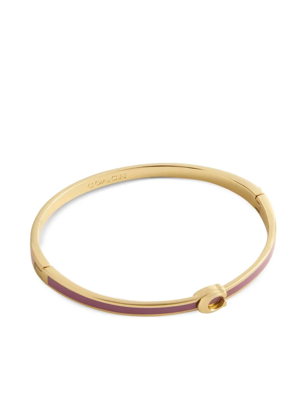 logo-detail bangle bracelet Highlights - Gold-tone - Pink - Signature logo charm - Hinged - Slip-on style - Normal everyday use and external agents may reduce the lustre of gemstones and gold surfaces. to maintain, use specific, non-abrasive products specially meant for cleaning jewellery. Imported