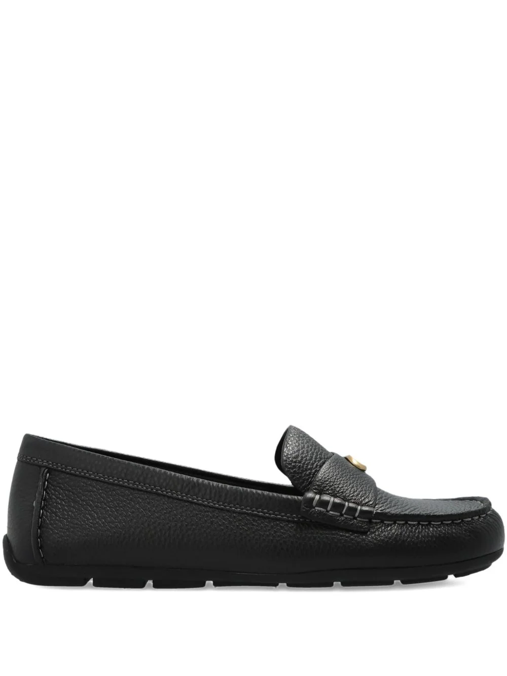 logo-detail leather loafers Highlights - Black - Leather - Gold-tone hardware - Slip-on style - Logo detail - Rubber sole Imported Composition Outer: Calf Leather 100% Lining: Fabric 100% Sole: Rubber 100%