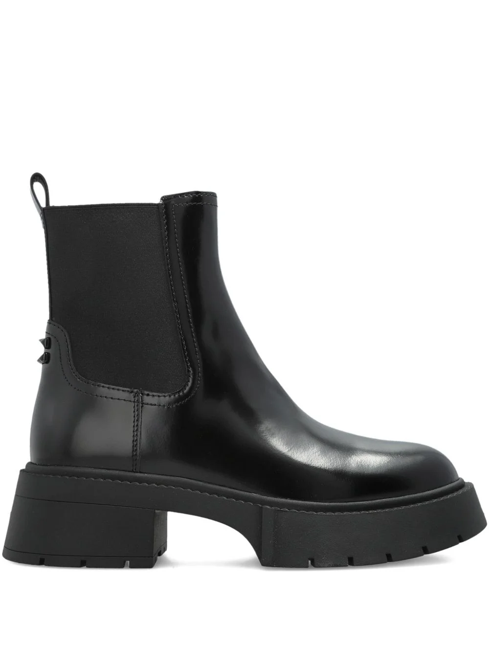lug-sole leather chelsea boots Highlights - Black - Calf leather - Lug sole - Pull-tab at the opening - Elasticated side panels - Block heel Imported Composition Outer: Calf Leather 100% Lining: Fabric 100% Sole: Rubber 100%