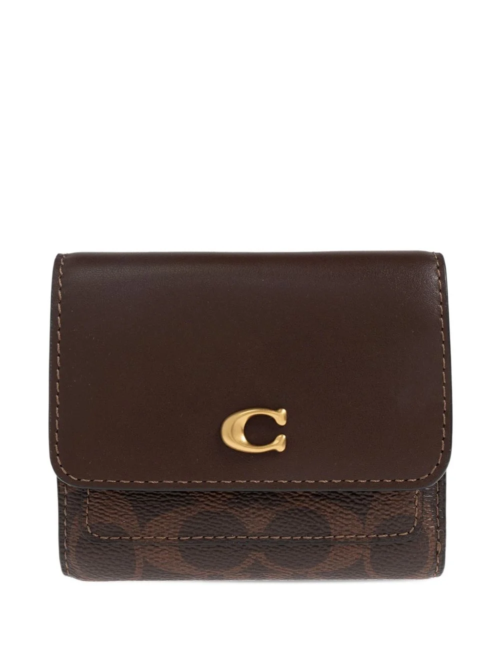 Mila logo pattern wallet Highlights - Dark brown - Logo detail - Gold-tone hardware - Zip fastening - Press-stud fastening - Internal card slots Imported Composition Outer: Canvas 100%, Calf Leather 100% SIZE & FIT Measurement LENGTH 4.25 in(10.8 cm) STRAP 3.74 in(9.5 cm) DEPTH 0.51 in(1.3 cm)