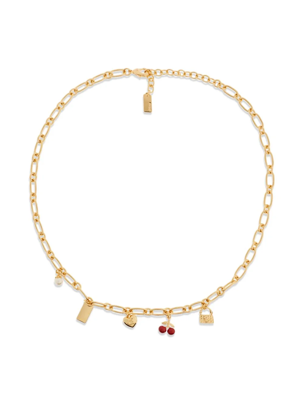 multi-pendant necklace Highlights - Gold-tone - Charm detail - Heart motif - Cherry motif Imported