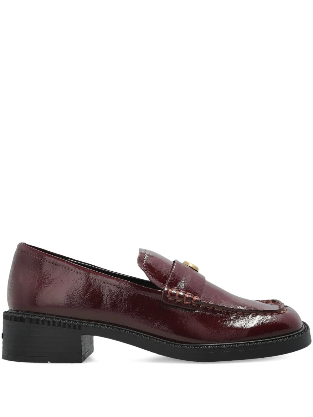 25mm Penny loafers Highlights - Bordeaux red - Calf leather - Gold-tone hardware - Block heel - Logo detail - Rubber sole Imported Composition Outer: Calf Leather 100% Lining: Leather 100% Sole: Rubber 100% SIZE & FIT Measurement HEEL 1 in(2.5 cm)