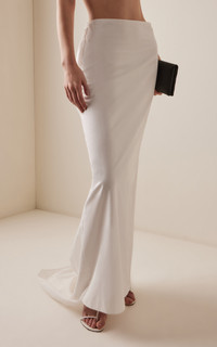 The young creative director and former menswear designer launched her ready-to-wear women’s collection in February ‘24 to critical acclaim. This season, each piece adds to the label’s ethereal aesthetic, exploring femininity through mythical archetypes. Perfect for the modern bride or black-tie guest, this low-rise skirt is designed to be gently flared with a train hem and deliberately placed bustles. Style with an equally ruched strapless top or a chic cropped cardigan. PRODUCT DETAILS - Spring/Summer ‘25 - Concealed zip fastening - Composition: 100% cotton - Dry clean - Made in the USA SIZE & FIT - Our model is wearing a size US 2 - Model is 5'10" with a 32" bust, 23.5" waist, and 34.5" hip