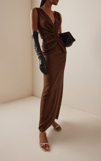 The young creative director and former menswear designer launched her ready-to-wear women’s collection in February ‘24 to critical acclaim. This season, each piece adds to the label’s ethereal aesthetic, exploring femininity through mythical archetypes. Made just for us, this sleeveless top is made from two layers of silk chiffon that are ruched along the bodice. Pair it with the matching skirt from this season. PRODUCT DETAILS - Resort '26 - Hook and eye fastening - Composition: 100% silk - Designer color: Chocolate - Dry clean - Made in the USA