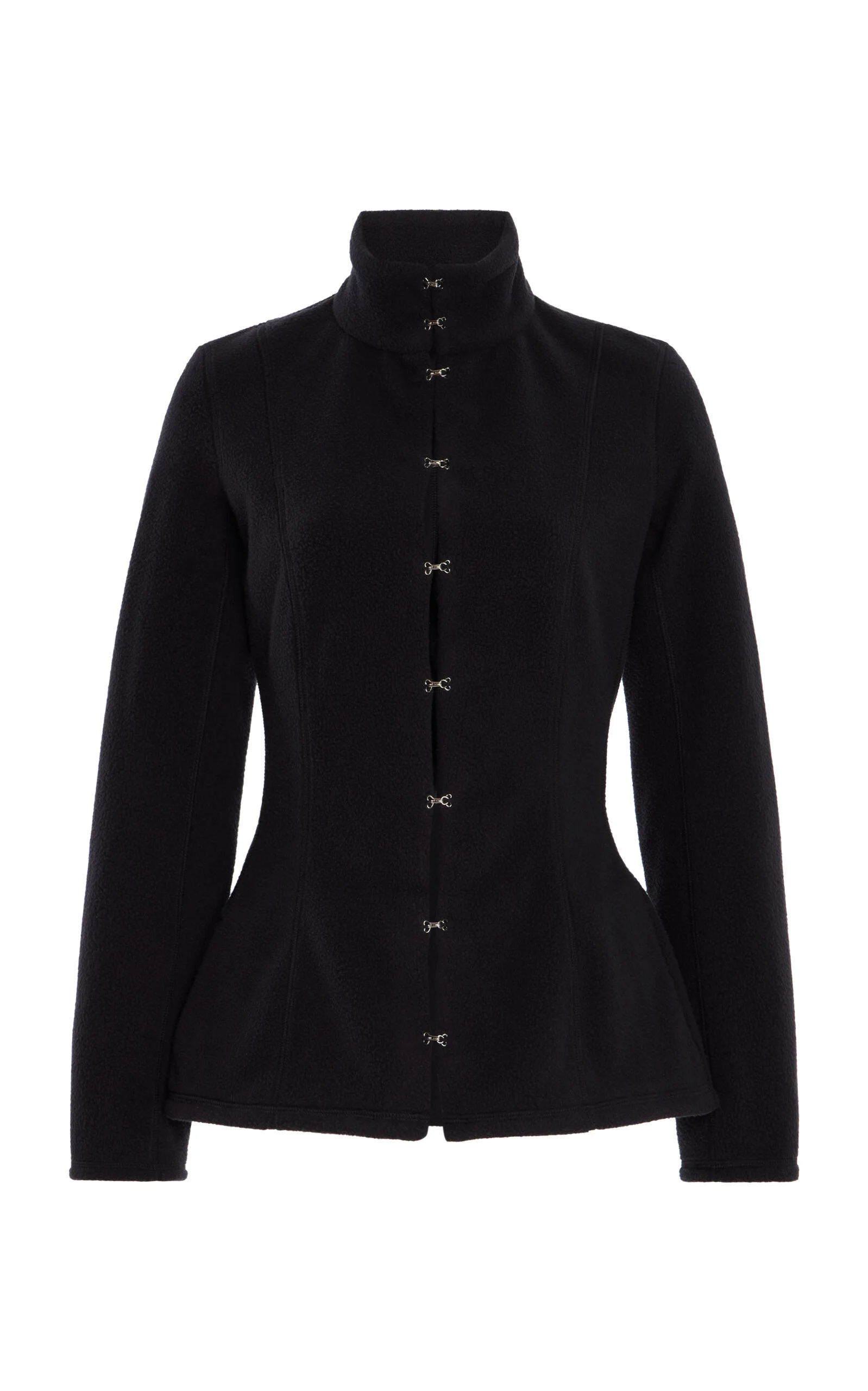 The young creative director and former menswear designer launched her ready-to-wear women’s collection in February ‘24 to critical acclaim. This season, each piece adds to the label’s ethereal aesthetic, exploring femininity through mythical archetypes. Employing a casual fleece, the label tailors this jacket with formal structure. It’s designed for a close fit, with a stand collar and slightly flared hem. The longline shape pairs well with smart maxis and wide-leg pants. PRODUCT DETAILS - Fall/Winter ‘25 - Hook fastening - Composition: 100% polyester - Dry clean - Made in the USA