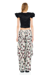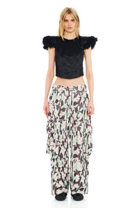 BLACK PAINTED DAISY PLEATED CARGO PANT