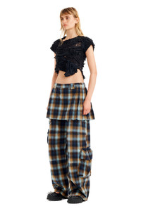 This edgy crop top is explodes in a riot of textures and pops of skin thanks to hand-knitted openings throughout. This shirt is constructed with reclaimed single use t-shirts which are collected from the Kantamanto Market in Accra, Ghana through our partnership with the OR Foundation. Model wears size Small Due to the nature of the materials there will be slight variations in each garment. - Short sleeves - Asymmetric neck - Unlined - 100% recycled cotton - Dry clean - Made in the USA - This runs true to size. - XS=00-0, S=0-2, M=2-4, L=6-8.
