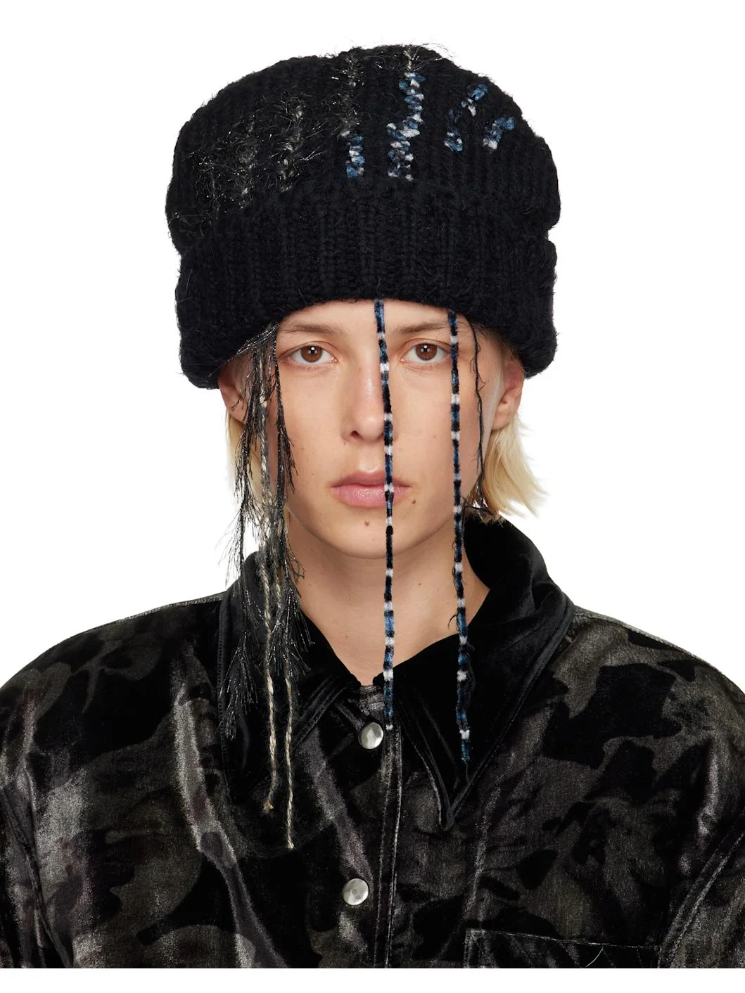 Brushed knit beanie. · Metallic threads throughout · Rolled brim Supplier color: Disco plaid 30% viscose, 22% polyamide, 19% polyester, 10% acrylic, 8% cotton, 6% alpaca, 2% wool, 2% metal fibre. Made in Italy 252236F014003