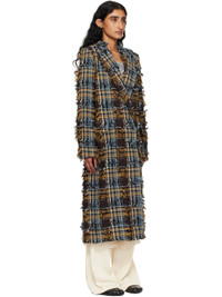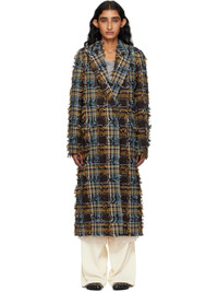 Cotton cavalry twill coat. · Check pattern and fringed detailing throughout · Peaked lapel · Concealed double-breasted press-stud closure · Welt pocket at chest · Flap pockets at waist · Central vent at back hem · Welt pocket at interior · Full satin lining Supplier color: Loam plaid Body: 100% cotton. Lining: 100% polyester. Made in United States 252236F059000