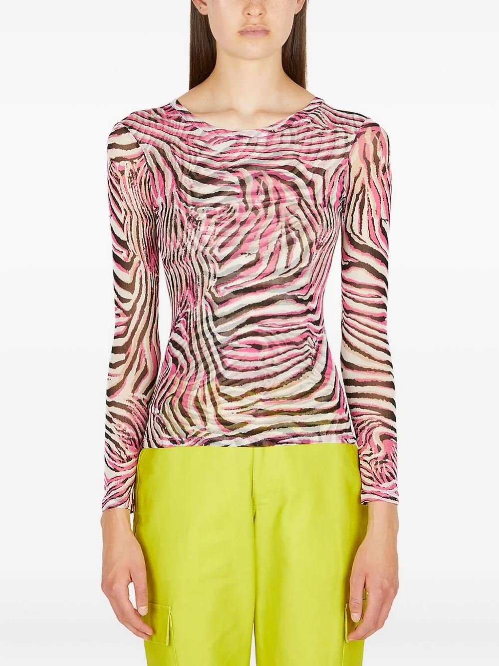 zebra-print top Highlights - Pink - All-over zebra print - Crew neck - Long sleeves Imported Composition Nylon 82%, Elastane 18% Washing instructions Read Manufacturer Guidelines