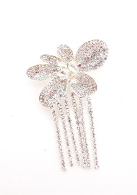 Rhinestone flower pin with rhinestone fringe. Add to any outfit for extra flair. Pin is 2.5" x 2.25" Made in China Please note all sale items are final sale.