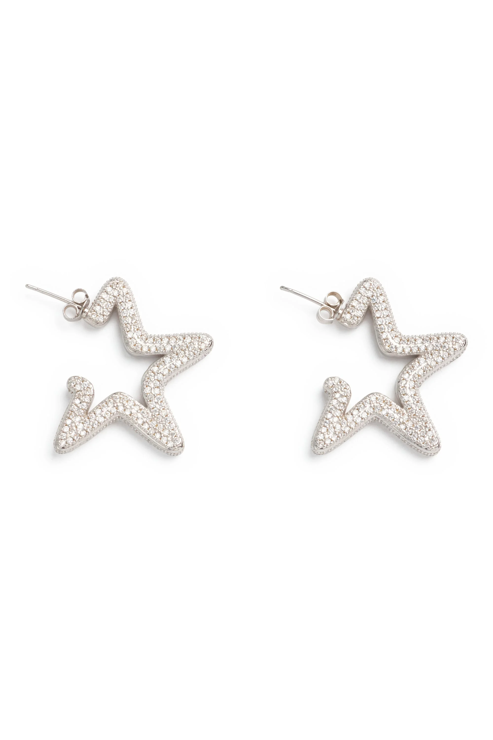 Sterling silver super star earrings encrusted in clear rhinestones. Stud back. 100% sterling silver and cubic zirconia 3cm x 2.5cm This is a costume jewelry piece. Please use care with this item and do not wear while bathing or swimming. Excessive wear may cause the finish to deteriorate. Jewelry bag handmade with fabric scraps from our NY studio. Each jewelry bag is one of a kind.