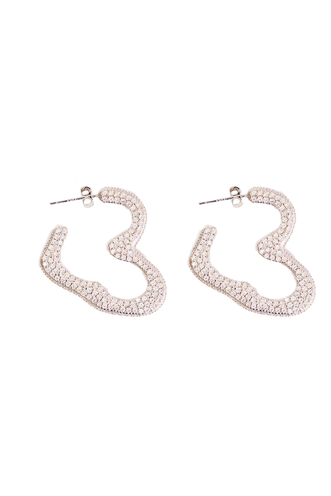 Sterling silver oversized heart earrings encrusted in clear rhinestones. Organic open heart shape with stud backing. 100% sterling silver and cubic zirconia 3 x 3 cm This is a costume jewelry piece. Please use care with this item and do not wear while bathing or swimming. Excessive wear may cause the finish to deteriorate. Jewelry bag handmade with fabric scraps from our NY studio. Each jewelry bag is one of a kind.