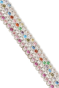 Crystal link necklace. Adjustable length. Swarovski crystals and plated brass 29.5-35.5 cm This is a costume jewelry piece. Please use care with this item and do not wear while bathing or swimming. Excessive wear may cause the finish to deteriorate. Jewelry bag handmade with fabric scraps from our NY studio. Each jewelry bag is one of a kind.