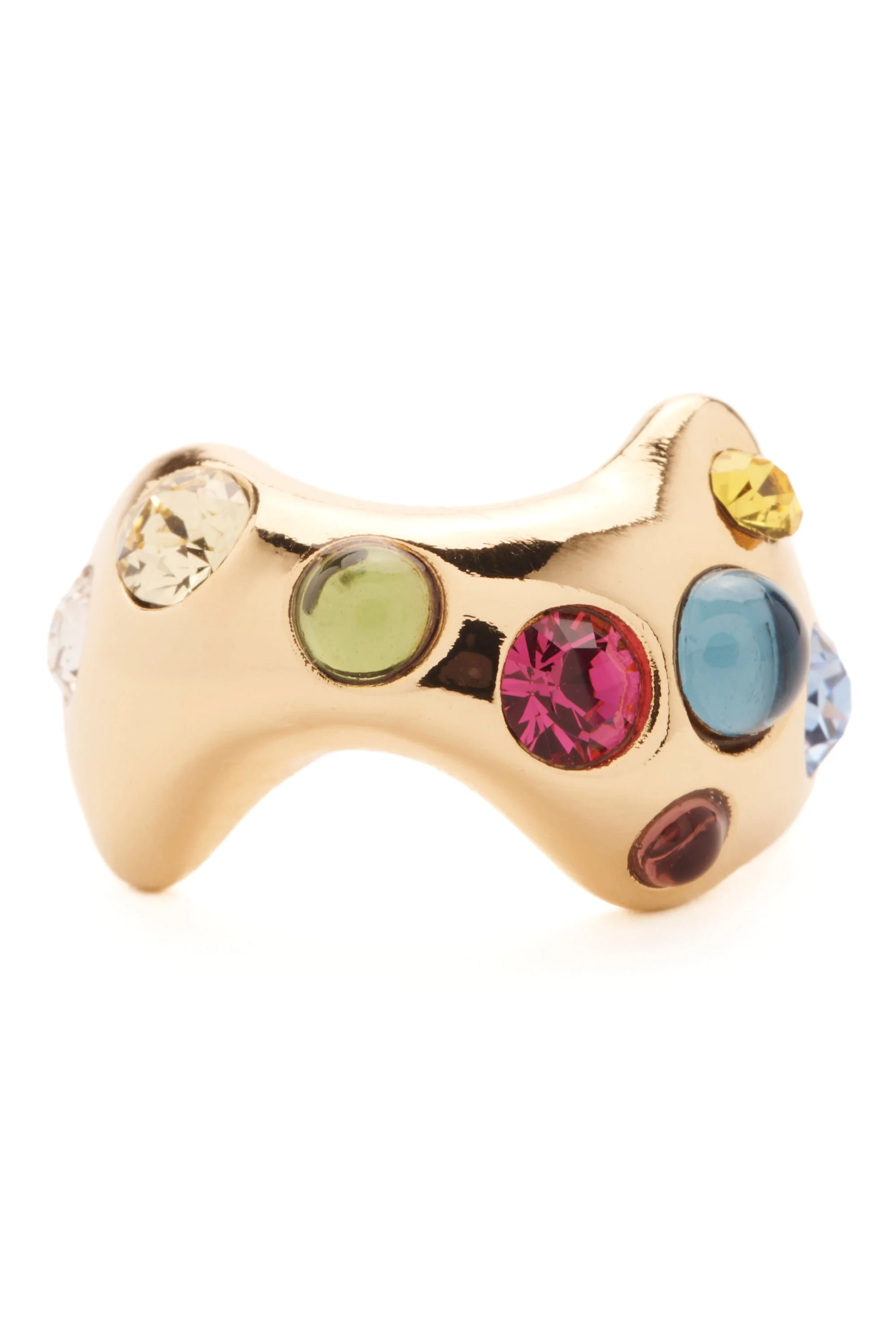 Organic ring with deadstock multi colored crystals and cabochons. 100% Recycled Pewter and Swarovski Crystals Made in USA This is a costume jewelry piece. Please use care with this item and do not wear while bathing or swimming. Excessive wear may cause the finish to deteriorate. Jewelry bag handmade with fabric scraps from our NY studio. Each jewelry bag is one of a kind. SIZE Diameter of Ring in MM UK/ Australia Europe USA Japan 6 16.15 - 16.35 L 1/2 52 6 11 7 17.00 - 17.25 N 1/2 54 7 14 8 17.75 - 18.10 P 1/2 57 8 16 9 18.50 - 19.00 R 1/2 60 9 18 10 19.50 - 19.75 T 1/2 62 10 20
