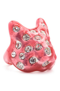 Puffy bunny ring with rhinestone freckles. Hand enameled. Recycled pewter and deadstock Swarovski crystals Hand enameled Made in the USA This is a costume jewelry piece. Please use care with this item and do not wear while bathing or swimming. Excessive wear may cause the finish to deteriorate. Jewelry bag handmade with fabric scraps from our NY studio. Each jewelry bag is one of a kind.