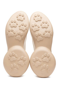 Mesh Ruffle Boot made with FCTRY LAb. Ruffle detail up the center seam and around the ankle. Zip back boot with custom paw print sole design. Upper 100% recycled polyamide nylon Outsole 15% bagasse (sugarcane) 60% EVA 25% rubber/misc Box - 100% Recycled Craft paper Made in PRC