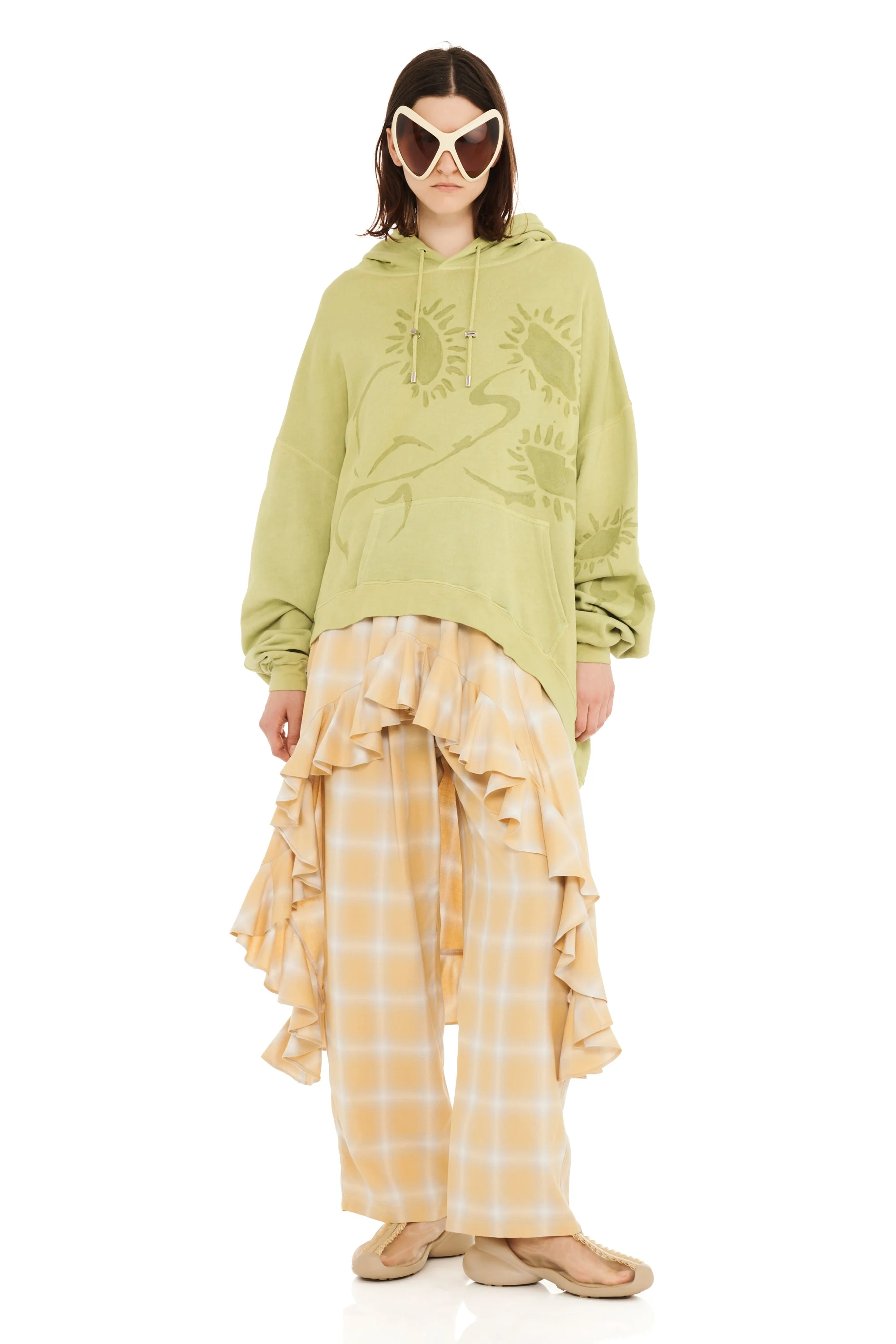 Hand painted sweatshirt with asymmetrical hemline. 100% Deadstock Cotton Made in Portugal, finished in New York - Oversized - Model is 5'11" and wears size L - XS=0-2, S=2-4, M=4-6, L=6-8, XL=10-12 This is a hand dyed garment, there may be slight variations.