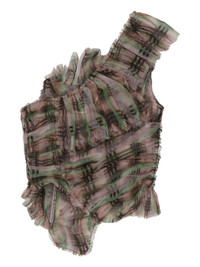 plaid ruffle silk-chiffon top Highlights - Brown/multicolour - Silk - Chiffon - Plaid check print - Semi-sheer construction - Fully ruffled - One-shoulder - Concealed side zip fastening - Boned bodice - Cropped - Asymmetric hem Made in United States Composition Silk 100%