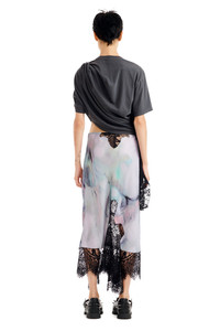 Sculpted floral-lace insets eat into the blurred floral-print crepe of this stunning bias-cut skirt finished with a swingy handkerchief hem. Side seam zipper. Model wears size Small - 36" length (size Medium) - Hidden side-zip closure - Unlined - 100% viscose with 100% nylon contrast - Made in the USA - Dry clean - True to size. - XS=00-0, S=2-4, M=6-8, L=8-10 Dont see your size? More sizes here