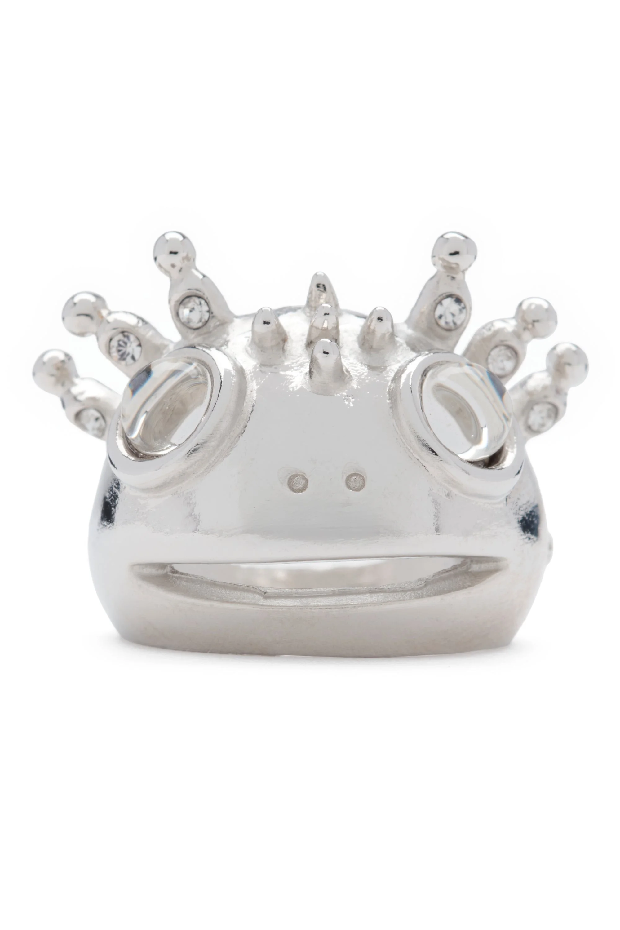 Silver Axolotl ring with deadstock crystal crown and clear eyes. Hand enameled. Made in USA with recycled pewter. This is a costume jewelry piece. Please use care with this item and do not wear while bathing or swimming. Excessive wear may cause the finish to deteriorate. Jewelry bag handmade with fabric scraps from our NY studio. Each jewelry bag is one of a kind.