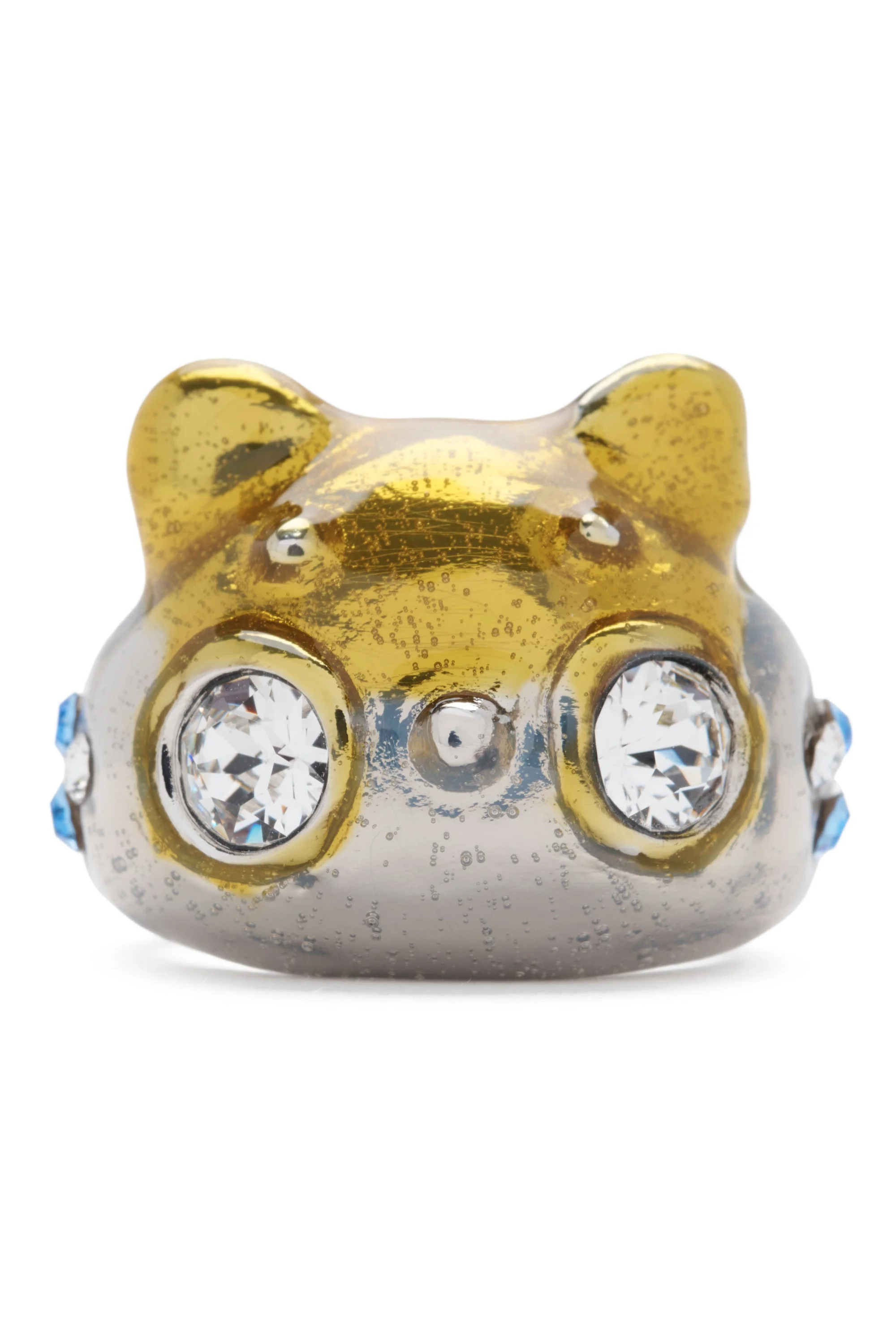 Two toned Bug Ring with clear rhinestone eyes. 100% recycled pewter and Swarovski Crystals Made in USA This is a costume jewelry piece. Please use care with this item and do not wear while bathing or swimming. Excessive wear may cause the finish to deteriorate. Jewelry bag handmade with fabric scraps from our NY studio. Each jewelry bag is one of a kind.