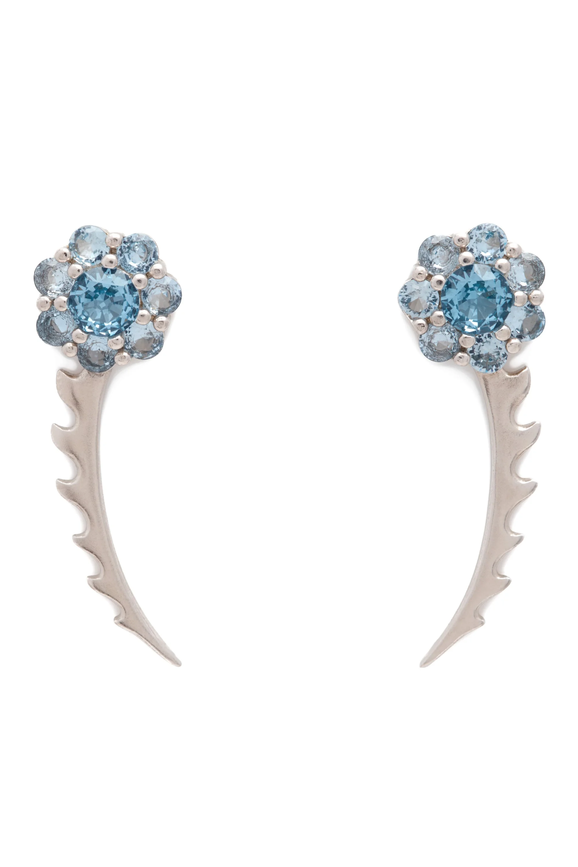Sterling silver daisy earrings with sky gemstones. Sterling silver stud back. Sterling silver and Rhinestone crystals Made in China Jewelry bag handmade with fabric scraps from our NY studio. Each jewelry bag is one of a kind.This is a costume jewelry piece. Please use care with this item and do not wear while bathing or swimming. Excessive wear may cause the finish to deteriorate.