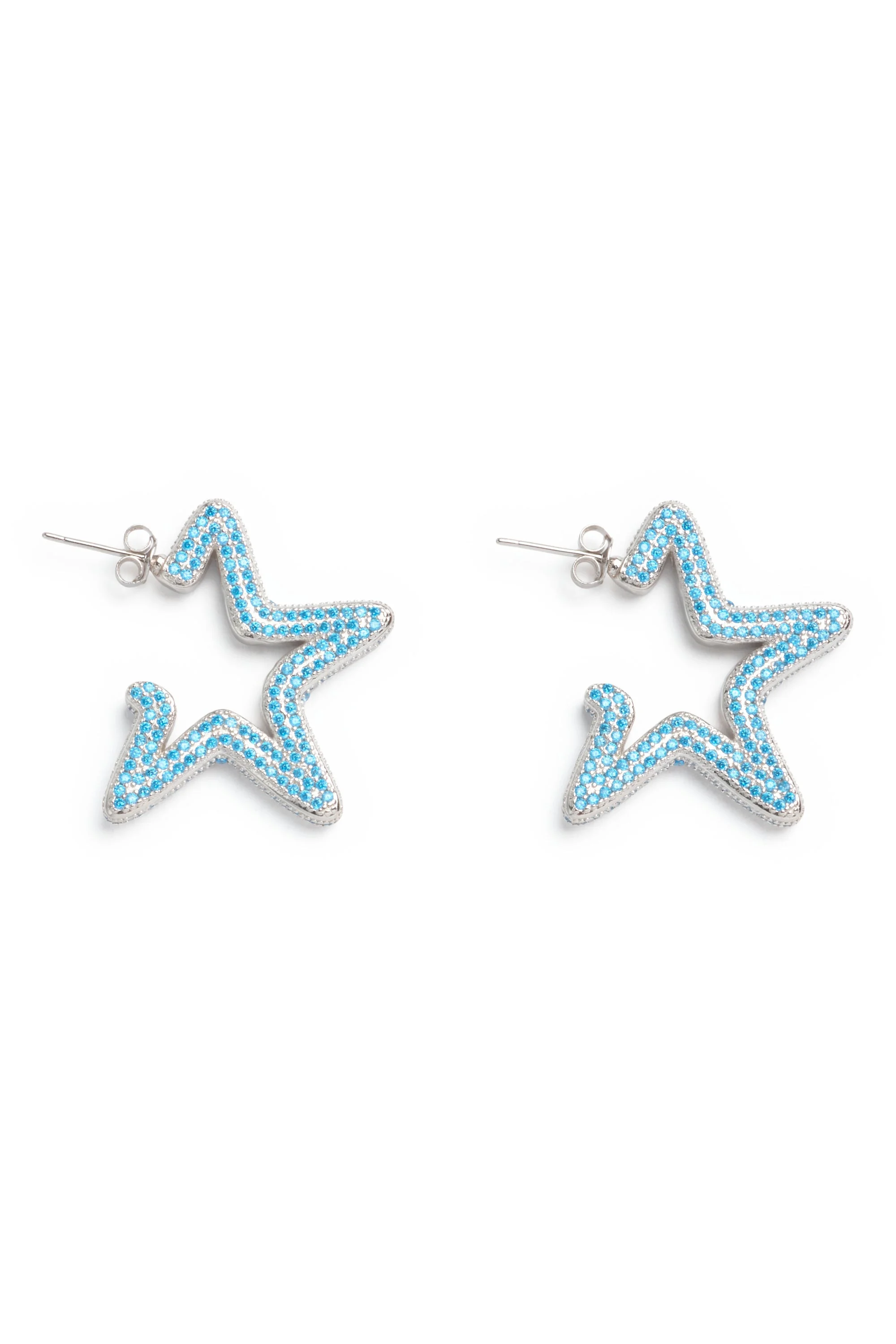 Sterling silver super star earrings encrusted with light blue rhinestones. Stud back. 100% sterling silver and cubic zirconia 3cm x 2.5cm This is a costume jewelry piece. Please use care with this item and do not wear while bathing or swimming. Excessive wear may cause the finish to deteriorate. Jewelry bag handmade with fabric scraps from our NY studio. Each jewelry bag is one of a kind.