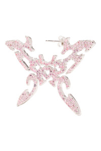 Soft pink butterfly-shaped earrings with rhinestones. Stud back. 100% sterling silver and cubic zirconia 3.5 x 5.5 cm Jewelry bag handmade with fabric scraps from our NY studio. Each jewelry bag is one of a kind. This is a costume jewelry piece. Please use care with this item and do not wear while bathing or swimming.