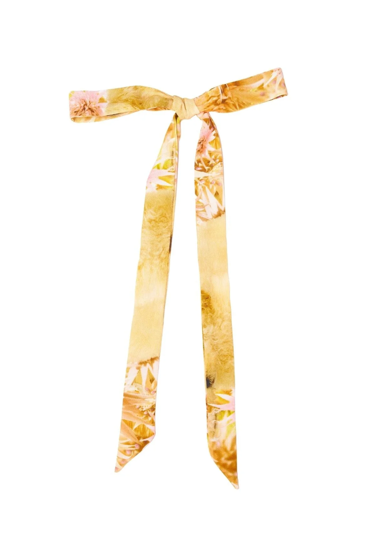 Long bow made from rose sylk. Ribbon can be tied in hair or onto bags and water bottles. Each bow will have a different print placement. All over custom handmade Collina Strada Spikey Puppy print. 1.25 x 48" Made in New York 100% Rose sylk Rose sylk is an organic cellulose fiber made from the natural waste of rose bushes and stems.