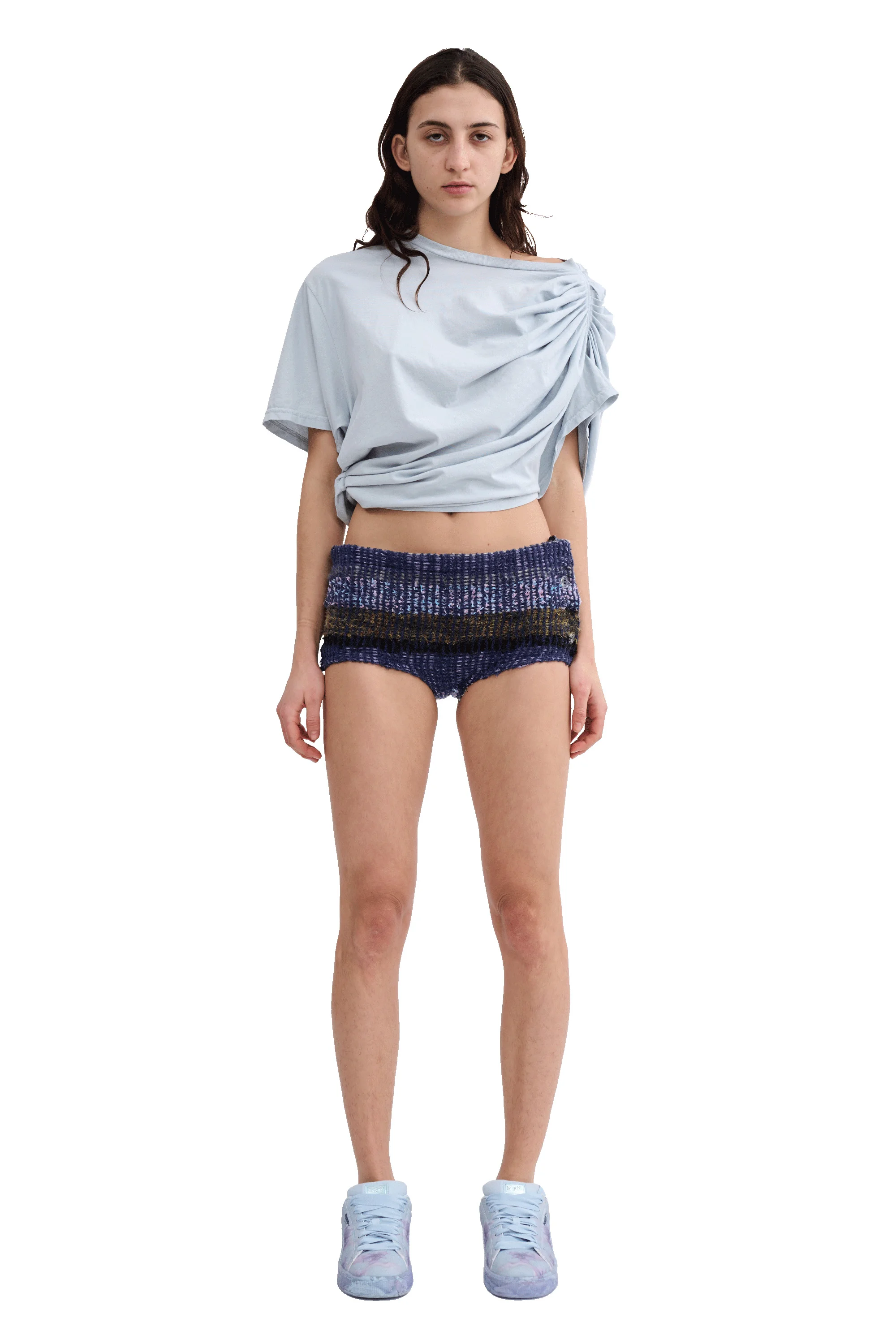 Mid rise tap shorts. Side seam button closure. Reclaimed yarns: 47% Polyamide 20% Cotton 13% Acrylic 11% Nylon 7% Wool Model wears size S Made in Italy in collaboration with Vitelli. Vitelli: Born “responsible”, it is since 2019 that Vitelli reached an almost 100% up cycling process, thanks to the special Doomboh fabric made with reclaimed and deadstock yarns only. - True to size. - XS=00-0, S=2-4, M=4-6, L=6-8, XL=10-12.