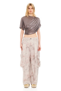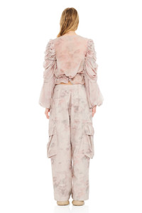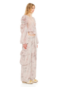 WASHED BEIGE WATERCOLOR ROSES PLEATED CARGO PANT