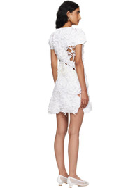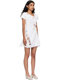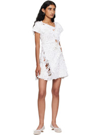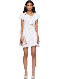 Deadstock cotton minidress. · Paneled construction · Hand-knitted laddering and raw edges throughout · Round neck · Asymmetrical hem Each item is unique. Please note finishings may vary. Supplier color: White 100% cotton. Made in United States 252236F052001