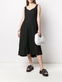 monogram A-line midi dress Black monogram A-line midi dress from Comme Des Garcons featuring a monogram pattern, an a-line shape, a v-neck, a sleeveless design and a back zip fastening. Imported Composition Polyester 100% SIZE & FIT Model measurements Height 5 ft 10 in(1.78 m) Bust/Chest 34.25 in(87 cm) Hips 35.03 in(89 cm) Waist 26.37 in(67 cm) FittingInformation This piece fits true to size. We recommend you get your regular size Designed for a close fit at the bust and waist, but loose at the hip Made with a mid-weight non-stretch fabric Washing instructions Dry Clean Only
