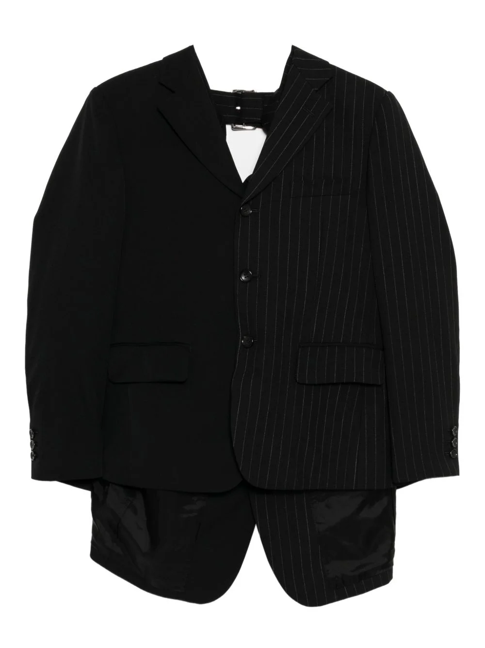 asymmetric blazer Highlights - Black - Front button fastening - Two front flap pockets - Pinstripe pattern Imported Composition Outer: Polyester 68%, Wool 29%, Polyurethane 3% Lining: Cupro 100% SIZE & FIT Model measurements Height 5 ft 10 in(1.77 m) Bust/Chest 28.34 in(72 cm) Hips 36.22 in(92 cm) Waist 25.19 in(64 cm) FittingInformation Designed to be unstructured, offering a loose fit throughout The internal shoulder pads offer a structured shape Made from a midweight non-stretch fabric Washing instructions Dry Clean Only