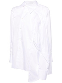 asymmetric cotton shirt Highlights - White - Cotton - Poplin texture - Front button fastening - Asymmetric design - Classic collar - Long sleeves - Buttoned cuffs - Curved hem - High-low hem Imported Composition Cotton 100%