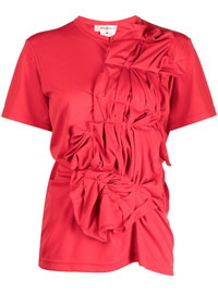 asymmetric gathered-detailing T-shirt Highlights - Poppy red - Asymmetric design - Gathered detailing - Tonal stitching - Crew neck - Short sleeves - Straight hem Imported Composition Polyester 100% SIZE & FIT Model measurements Height 5 ft 10 in(1.77 m) Bust/Chest 28.74 in(73 cm) Hips 35.82 in(91 cm) Waist 24.4 in(62 cm) FittingInformation Designed for a slim fit that sits just away from the body offering a close yet comfortable fit Made from a midweight non-stretch fabric, this piece offers minimal elasticity when worn This piece fits true to size – take your usual size Washing instructions Hand Wash
