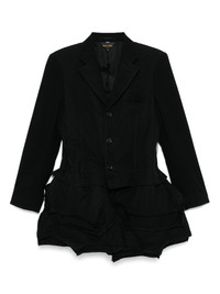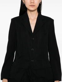 asymmetric hem blazer Highlights - Black - Front button fastening - Jetted chest pocket Imported Composition Nylon 100% Lining: Cupro 100% Outer: Wool 100% SIZE & FIT Model measurements Height 5 ft 10 in(1.77 m) Bust/Chest 30.7 in(78 cm) Hips 35.82 in(91 cm) Waist 21.25 in(54 cm) FittingInformation Designed for a slim fit that sits just away from the body offering a close yet comfortable fit Made from a midweight non-stretch fabric
