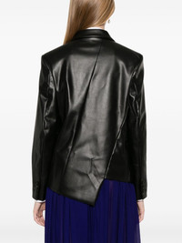asymmetric jacket Highlights - Black - Faux leather - Asymmetric design - Asymmetric hem - Front button fastening - Notched lapels - Shoulder pads - Long sleeves - Buttoned cuffs - Chest welt pocket - Dart detailing - Two front flap pockets - Full lining Imported Composition Outer: Polyurethane 56%, Polyester 44% Lining: Cupro 100% SIZE & FIT Model measurements Height 5 ft 9 in(1.75 m) Bust/Chest 31.88 in(81 cm) Hips 34.64 in(88 cm) Waist 24.01 in(61 cm) FittingInformation Designed for a slim fit that sits just away from the body offering a close yet comfortable fit Made from a midweight non-stretch fabric