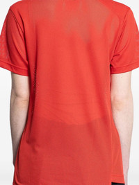 asymmetric mesh T-shirt Highlights - Red - Asymmetric hem - Short sleeves - Round neck Imported Composition Polyester 100% Washing instructions Read Manufacturer Guidelines