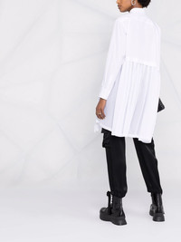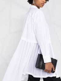 asymmetric pleated shirt white cotton straight-point collar off-centre front button fastening long sleeves asymmetric hem pleat detailing Imported Composition Polyester 100%, Cotton 100% SIZE & FIT Model measurements Height 5 ft 11 in(1.8 m) Bust/Chest 31.49 in(80 cm) Hips 35.82 in(91 cm) Waist 24.8 in(63 cm) FittingInformation This piece fits true to size. We recommend you get your regular size Cut for a loose fit Made with a mid-weight non-stretch fabric Washing instructions Hand Wash
