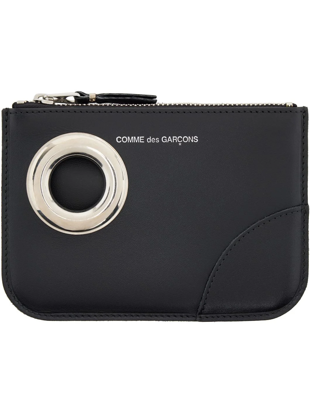 Buffed leather pouch. · Logo stamp and metal eyelet at face · Zip closure · H4" x W5.75" Supplier color: Black Leather. Made in Spain 261230F045001