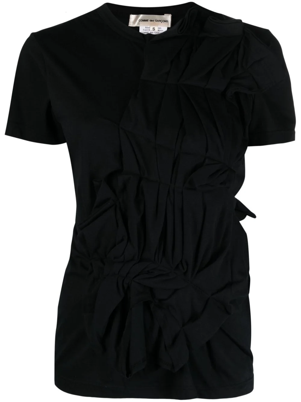 ruched T-shirt Highlights - Black - Cotton blend - Panelled design - Ruched detailing - Crew neck - Short sleeves - Straight hem Imported Composition Polyester 50%, Cotton 50% SIZE & FIT Model measurements Height 5 ft 10 in(1.79 m) Bust/Chest 33.07 in(84 cm) Hips 35.82 in(91 cm) Waist 24.01 in(61 cm) Measurement BUST 33.07 in(84 cm) LENGTH 23.62 in(60 cm) SLEEVE LENGTH 7.08 in(18 cm) Shoulder Width 14.96 in(38 cm) FittingInformation Designed for a slim fit that sits just away from the body offering a close yet comfortable fit Made from a midweight non-stretch fabric, this piece offers minimal elasticity when worn This piece fits true to size – take your usual size