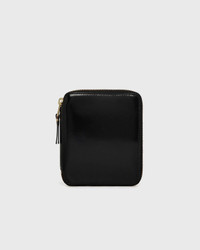 This wallet has all the details you would expect from Comme des Garçons. It features an embossed logo, a patent leather finish and a striking gold-colored metal zipper. The lining is made of gold-colored leather and almost looks like a mirror. - Zipper - Dimensions: 12.5cm x 10.5cm Article Number: SA2100MI-GOLD Gender: Men, Women Color: GOLD Material: 100% Leather