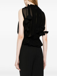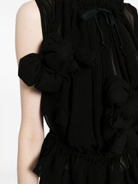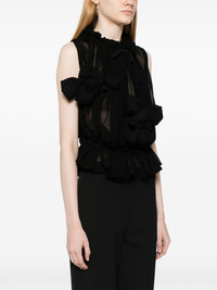 bow-detail semi-sheer blouse Highlights - Black - Semi-sheer construction - Bow detailing - Gathered tie neck - Sleeveless - Ruffle hem Imported Composition Outer: Polyester 100% Filling: Polyester 100% SIZE & FIT Model measurements Height 5 ft 10 in(1.78 m) Bust/Chest 29.13 in(74 cm) Hips 35.43 in(90 cm) Waist 23.62 in(60 cm) FittingInformation Designed to be unstructured, offering a loose fit throughout The elasticated waist allows for a comfortable fit Made from a midweight non-stretch fabric This piece fits true to size – take your usual size