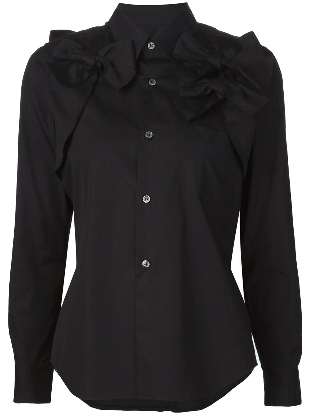 bow detail shirt Black cotton bow detail shirt from Comme Des Garcons. Imported Composition Cotton 100% SIZE & FIT Model measurements Height 5 ft 9 in(1.76 m) Bust/Chest 31.88 in(81 cm) Hips 33.85 in(86 cm) Waist 24.01 in(61 cm) Washing instructions Dry Clean Only