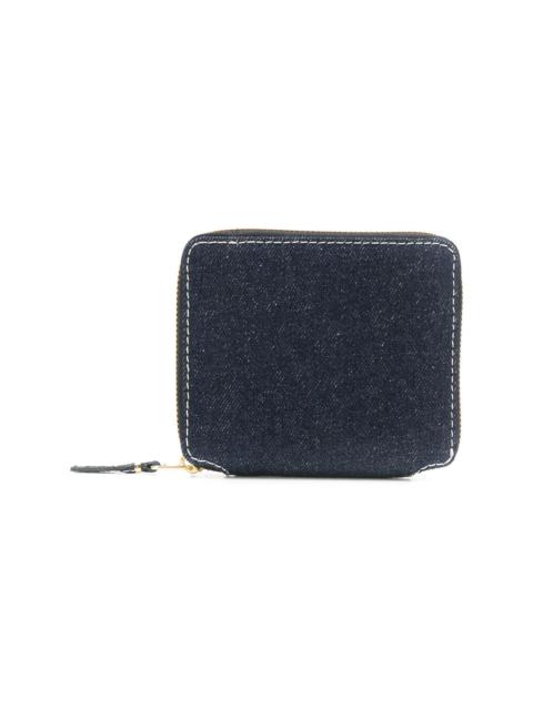 zip around wallet Highlights - Navy leather compact wallet from comme des garcons wallet featuring gold-tone hardware, a note compartment, multiple interior card slots and an all around zip fastening. Imported Composition Lining: Calf Leather 100% Outer: Calf Leather 100% SIZE & FIT Measurement WIDTH 3.93 in(10 cm) LENGTH 4.72 in(12 cm) DEPTH 0.78 in(2 cm)