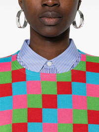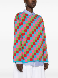 checked fisherman's-knit jumper Highlights - Pink/multicolour - Fisherman's knit - Ribbed trim - Check pattern - Crew neck - Long sleeves - Straight hem - Unlined Imported Composition Acrylic 60%, Wool 40% SIZE & FIT Model measurements Height 5 ft 11 in(1.8 m) Bust/Chest 32.67 in(83 cm) Hips 36.22 in(92 cm) Waist 24.4 in(62 cm) FittingInformation Designed to be unstructured, offering a loose fit throughout Made with a midweight knit, this piece offers some stretch This piece fits true to size – take your usual size