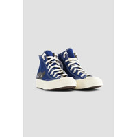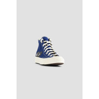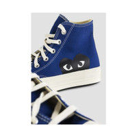 Step up your sneaker game with these stylish blue canvas high-top sneakers from the Converse X Comme des Garcons PLAY collaboration. Designed for women, these sneakers feature a black CDG Heart logo on the outside, adding a touch of edgy charm to your outfit. With their unisex design, these sneakers are perfect for anyone looking to make a fashion statement. Dont miss out on this must-have pair! ID: P1K122H232BLUE. Designer color: Blue Designer ID: AZK122 2 Material & Care 100% COTTON
