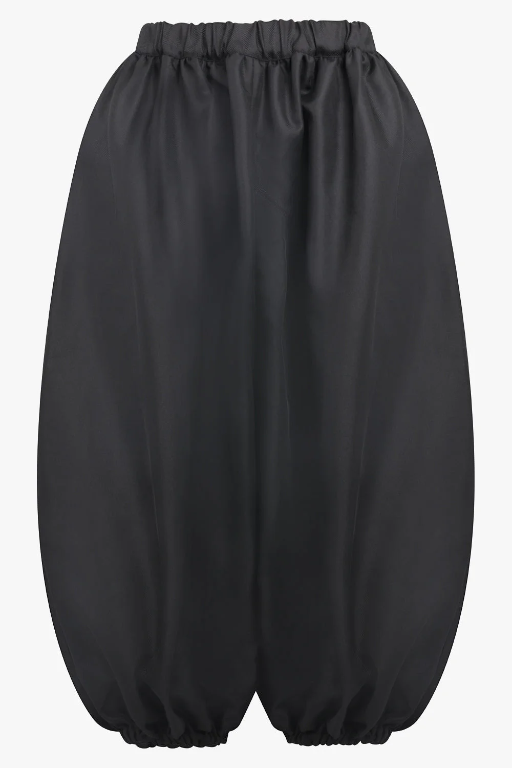 ELASTIC GATHERED WAIST BALLOON PANT WITH CUFF | BLACK